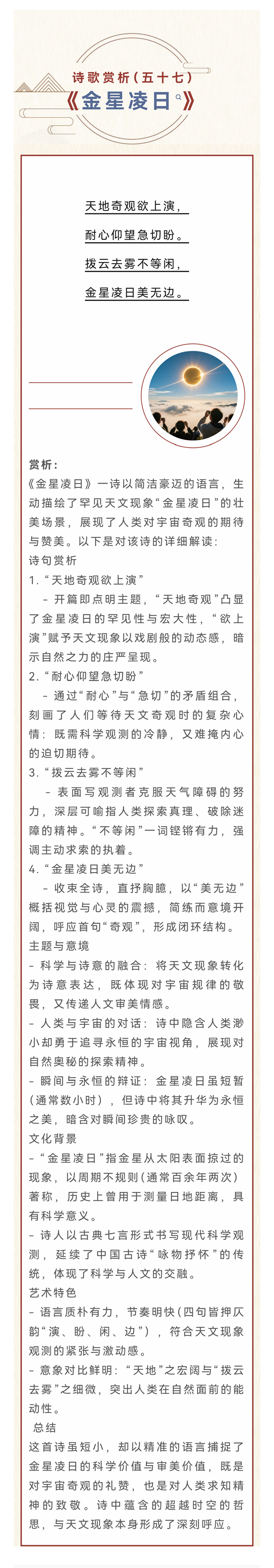 【侯庆桥·兮辞】诗歌赏析(五十七)金星凌日 2025-9-29 本文被阅读 1 次