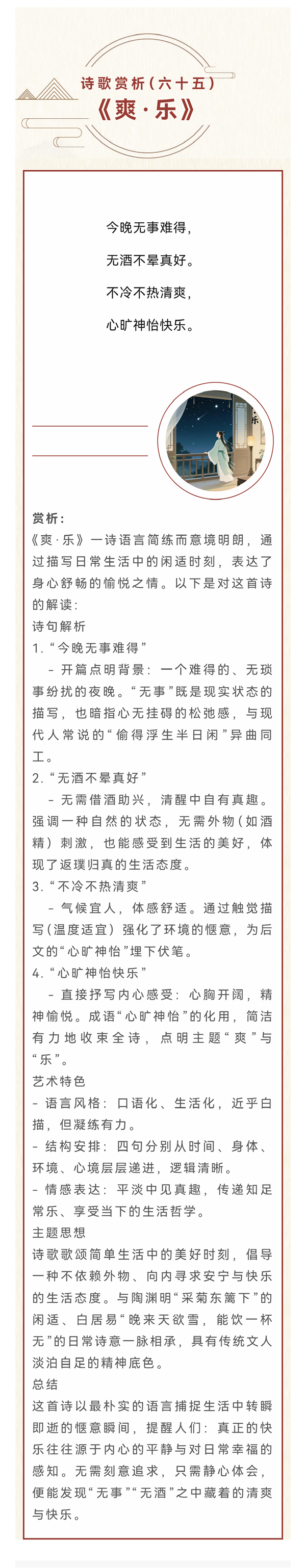 【侯庆桥·兮辞】诗歌赏析(六十五)爽·乐 2025-10-14 本文被阅读 1 次