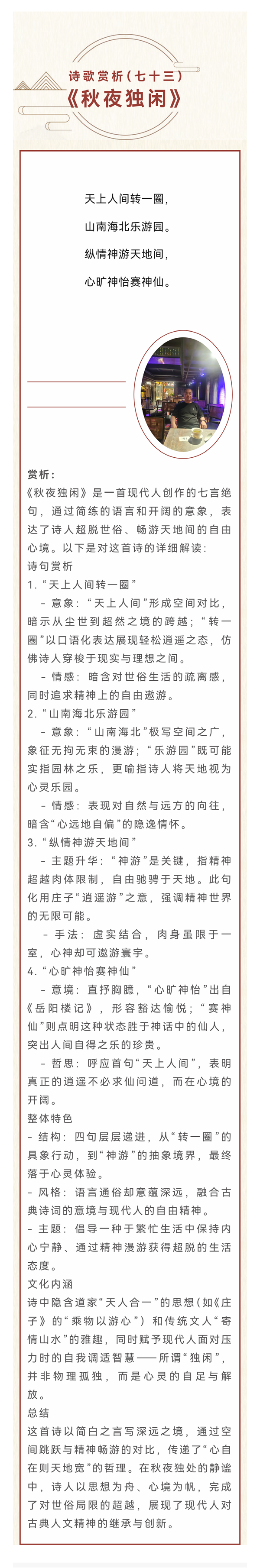 【侯庆桥·兮辞】诗歌赏析(七十三)秋夜独闲 2025-10-22 本文被阅读 1 次
