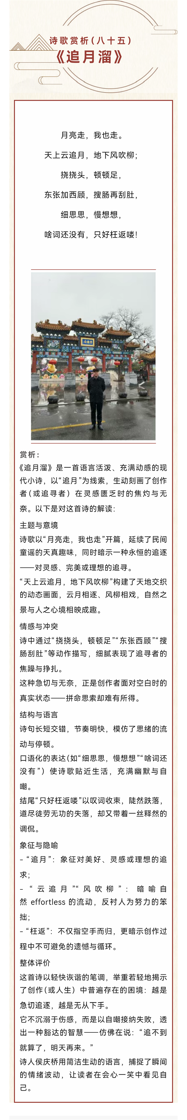 【侯庆桥·兮辞】诗歌赏析(八十五)追月溜 2025-11-7 本文被阅读 1 次