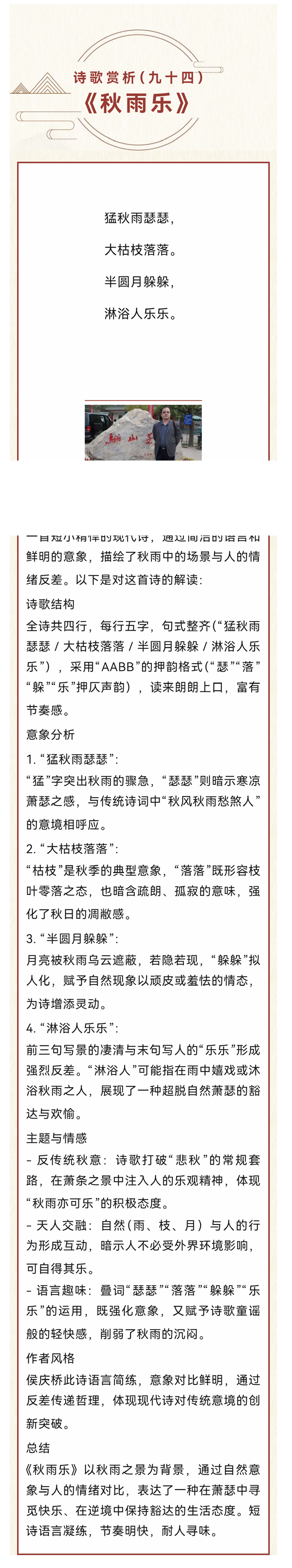 【侯庆桥·兮辞】诗歌赏析(九十四)秋雨乐 2025-11-13 本文被阅读 1 次
