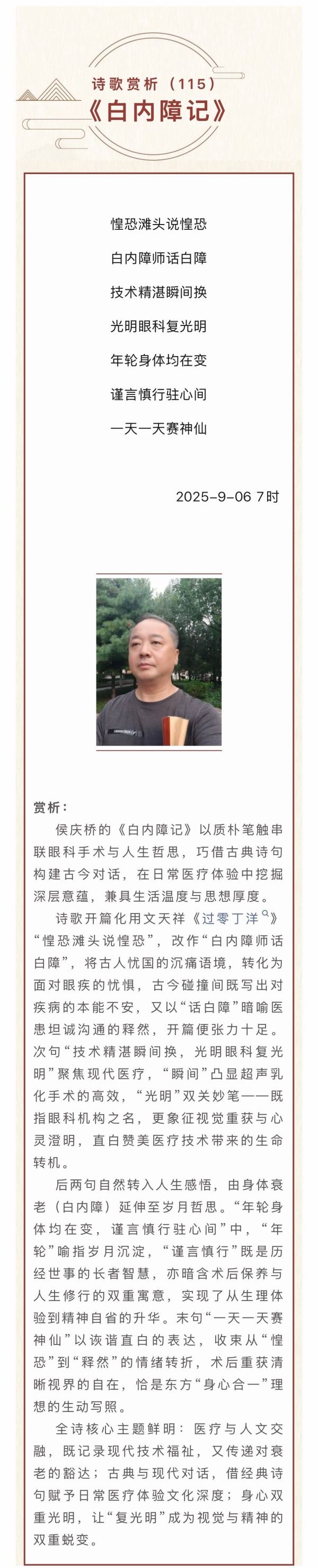 【侯庆桥·兮辞】诗歌赏析(115)白内障记 2025-12-8 本文被阅读 1 次