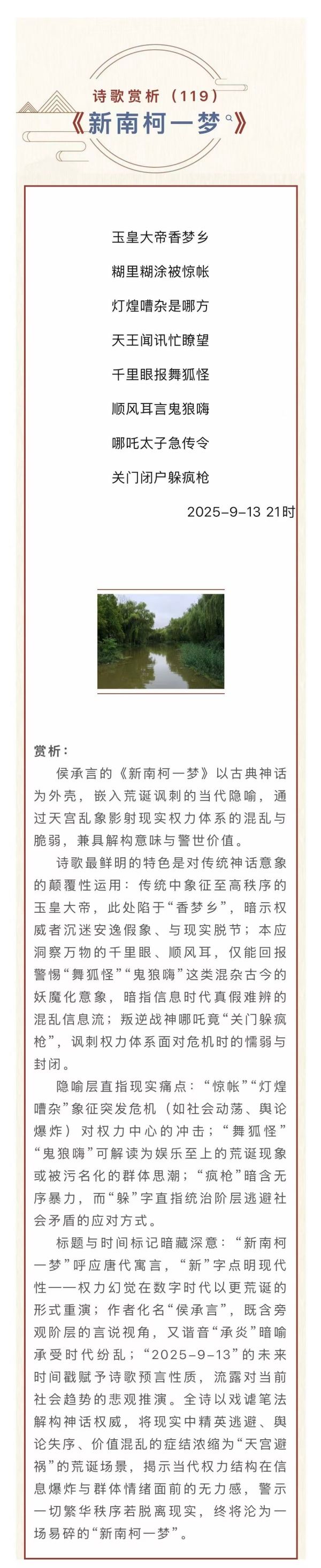【侯庆桥·兮辞】诗歌赏析(119)新南柯一梦 2025-12-12 本文被阅读 1 次