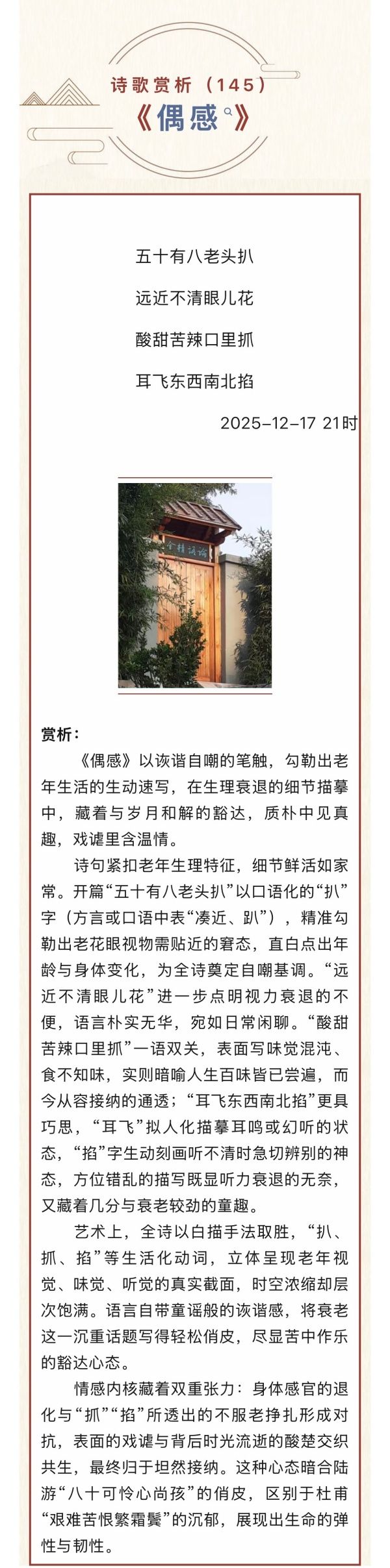 【侯庆桥·兮辞】诗歌赏析(145)偶感