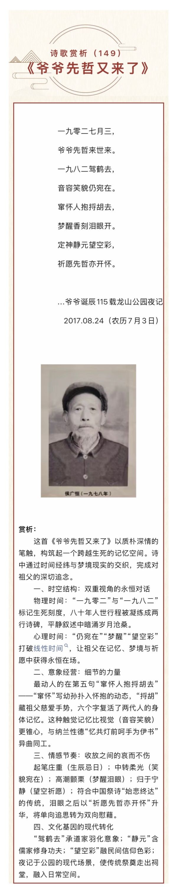 【侯庆桥·兮辞】诗歌赏析(149)爷爷先哲又来了