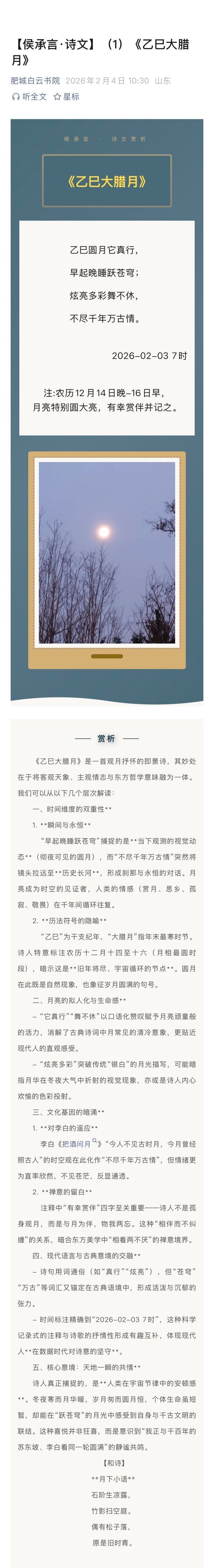 【侯承言·诗文】(1)《乙巳大腊月》 2026-2-7 本文被阅读 1 次