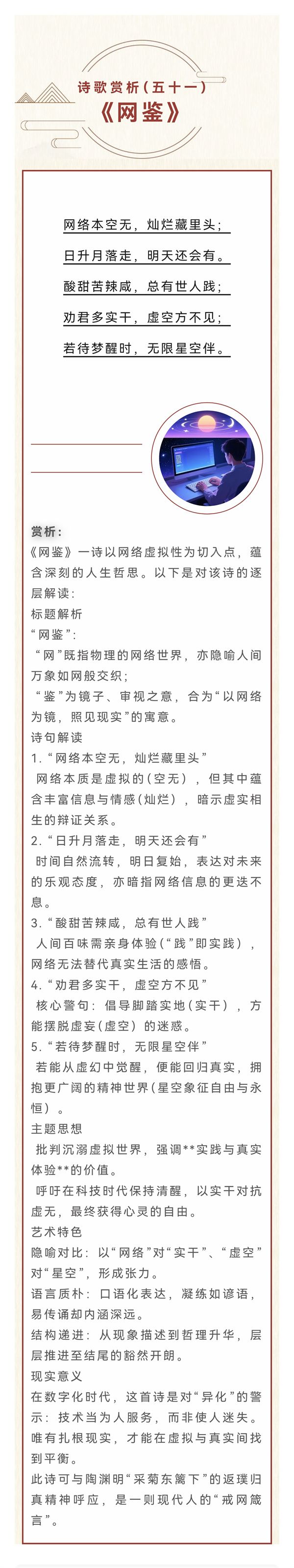 【侯庆桥·兮辞】诗歌赏析(五十一)网鉴 2025-9-19 本文被阅读 1 次