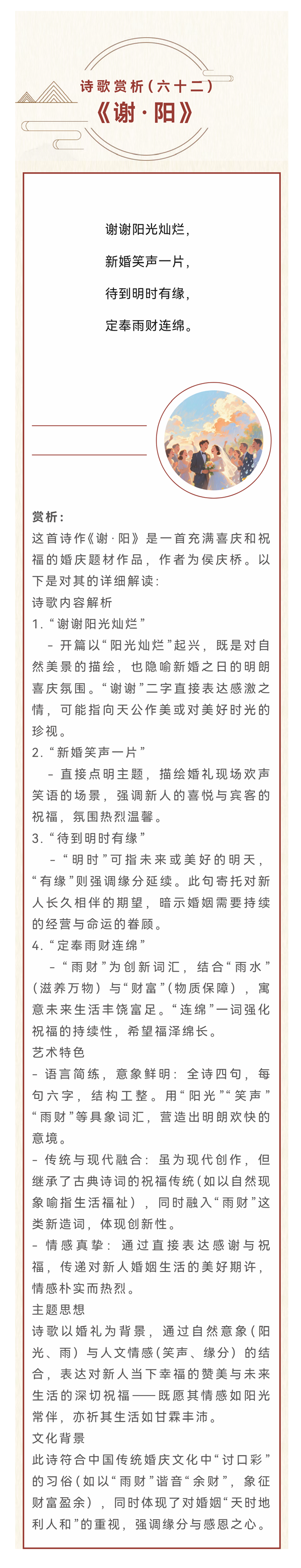 【侯庆桥·兮辞】诗歌赏析(六十二)谢·阳 2025-10-4 本文被阅读 1 次